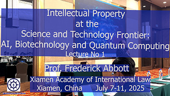 Ten lecture series delivered by Prof. Frederick Abbott (of Florida State University College of Law) at the Xiamen Academy of International Law, Xiamen, China, July 7-11, 2025.